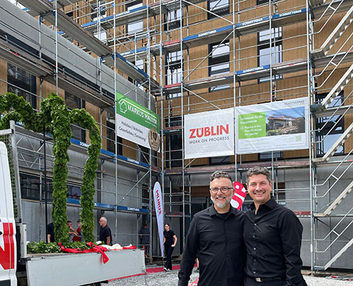 Beim Richtfest für den Neubau des Service- und Verwaltungszentrums gab es diesmal eine Richtkrone (zur Projektseite).